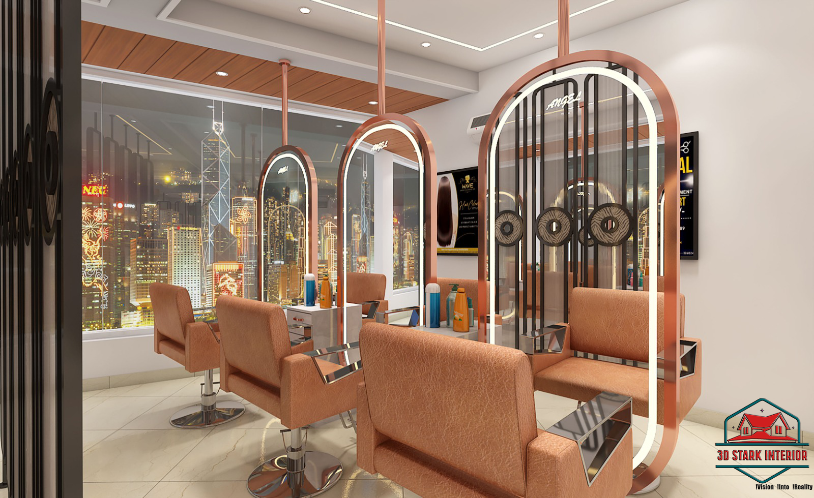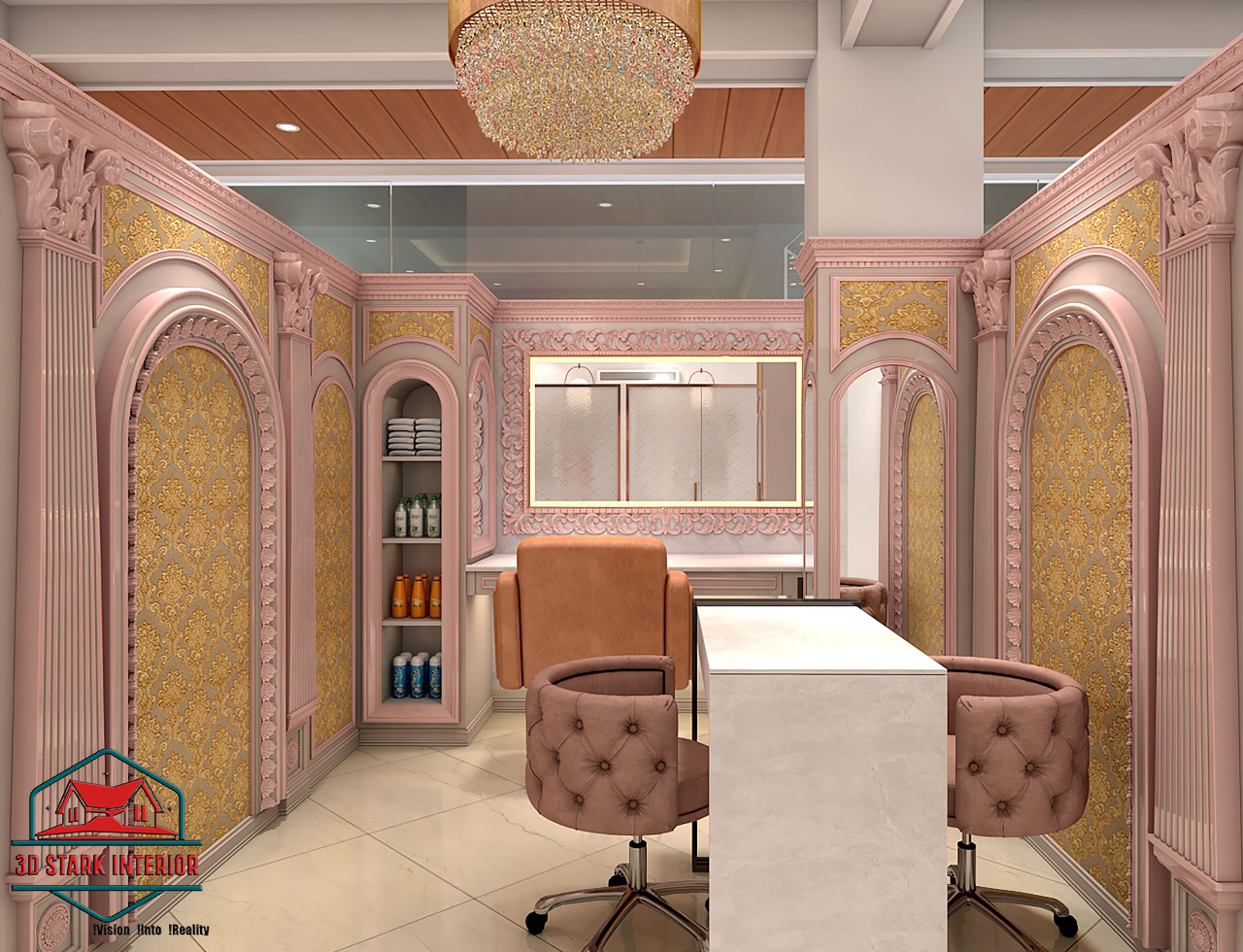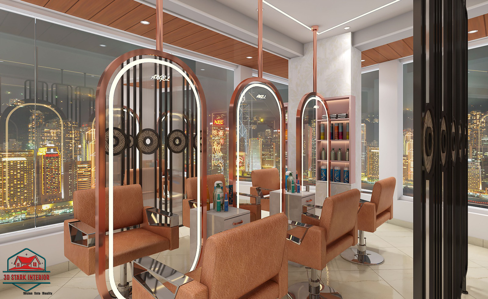 Angel Luxury Salon by 3D Stark Interior Design is a masterpiece of elegance and functionality, designed to reflect luxury, comfort, and sophistication. Our vision was to create a premium salon space that not only enhances the customer experience but also elevates the brand identity