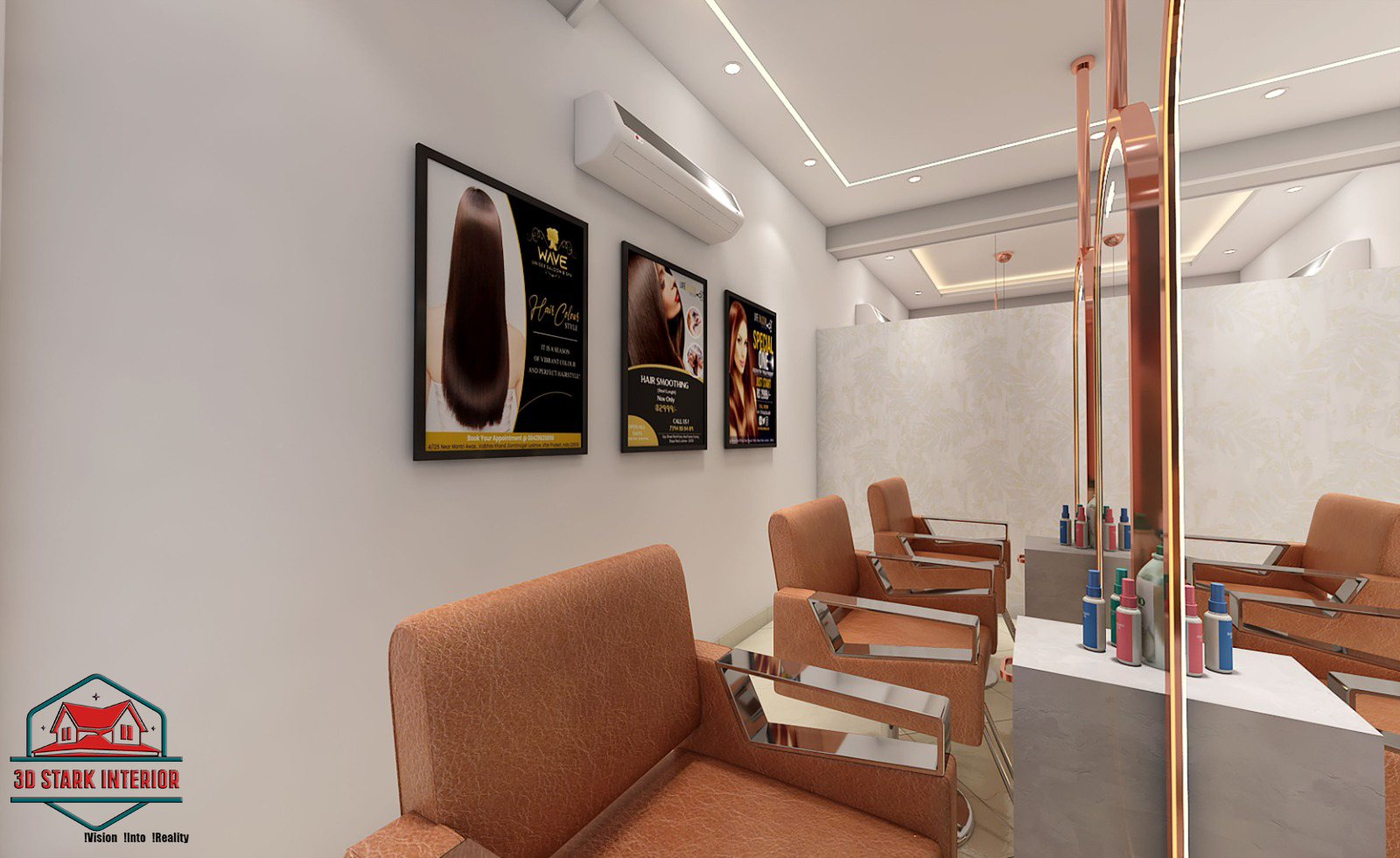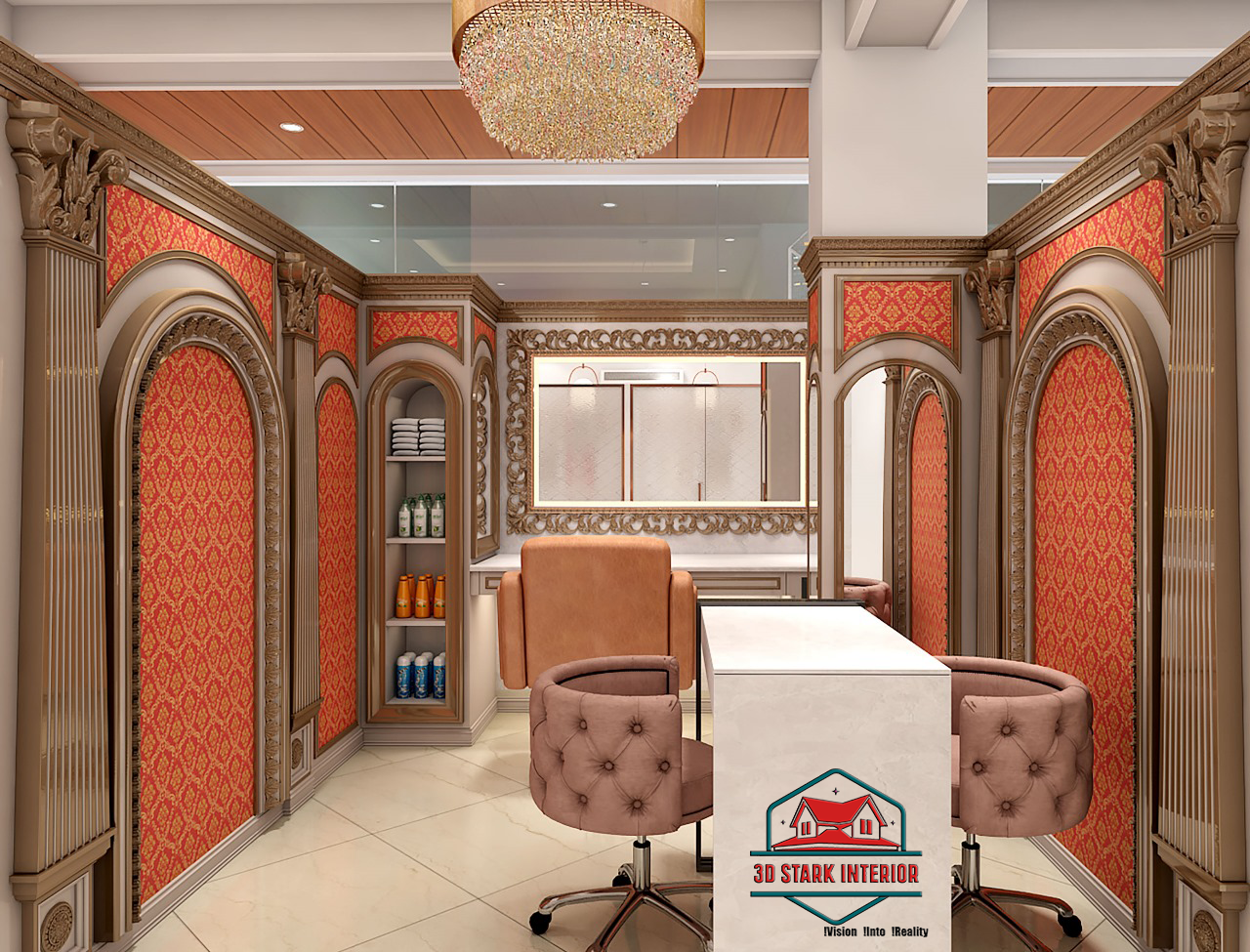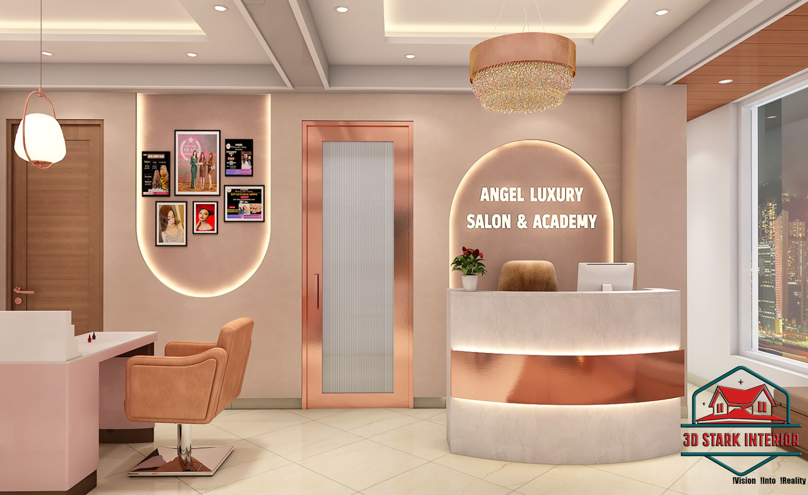 Angel Luxury Salon by 3D Stark Interior Design is a masterpiece of elegance and functionality, designed to reflect luxury, comfort, and sophistication. Our vision was to create a premium salon space that not only enhances the customer experience but also elevates the brand identity