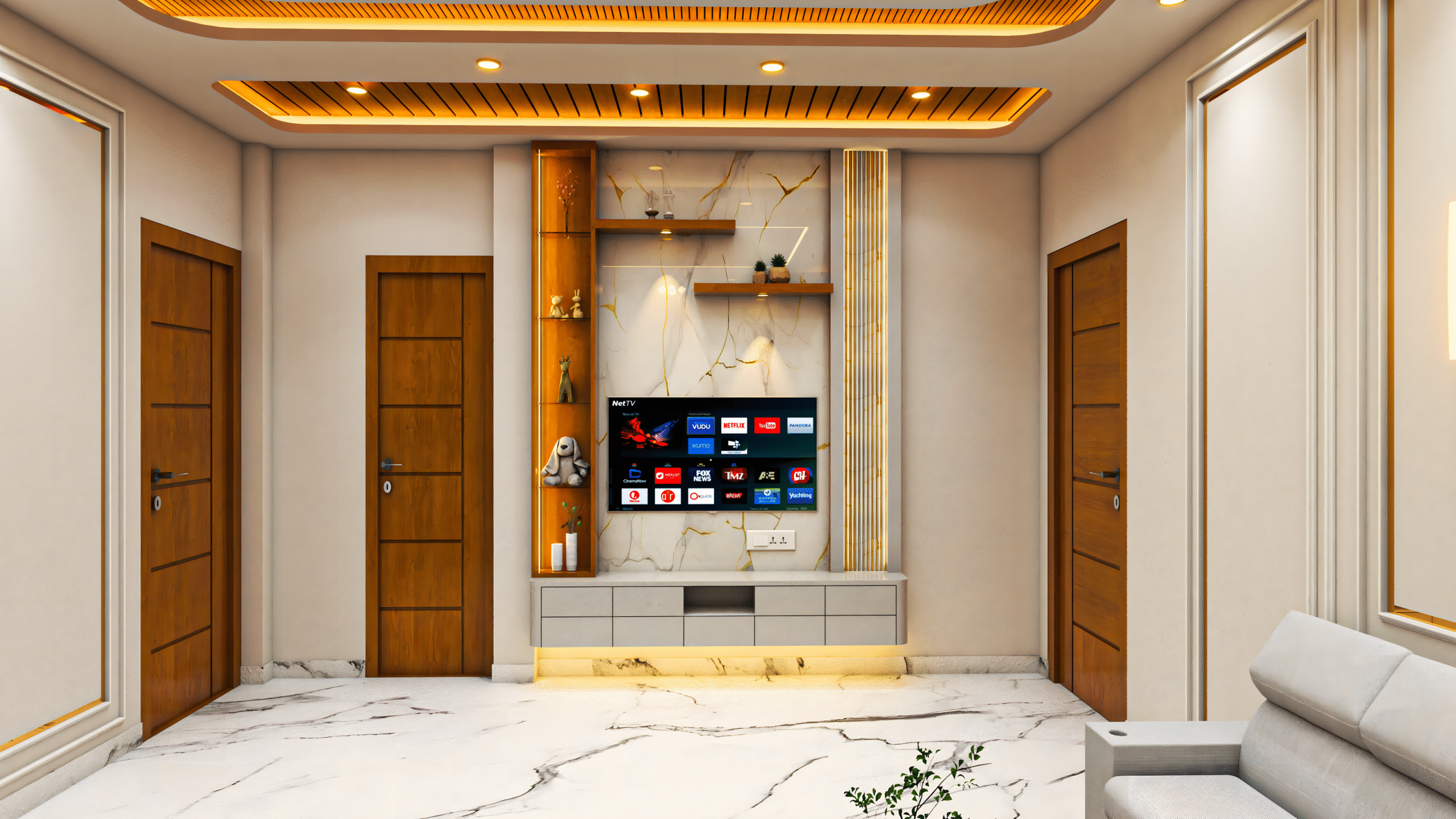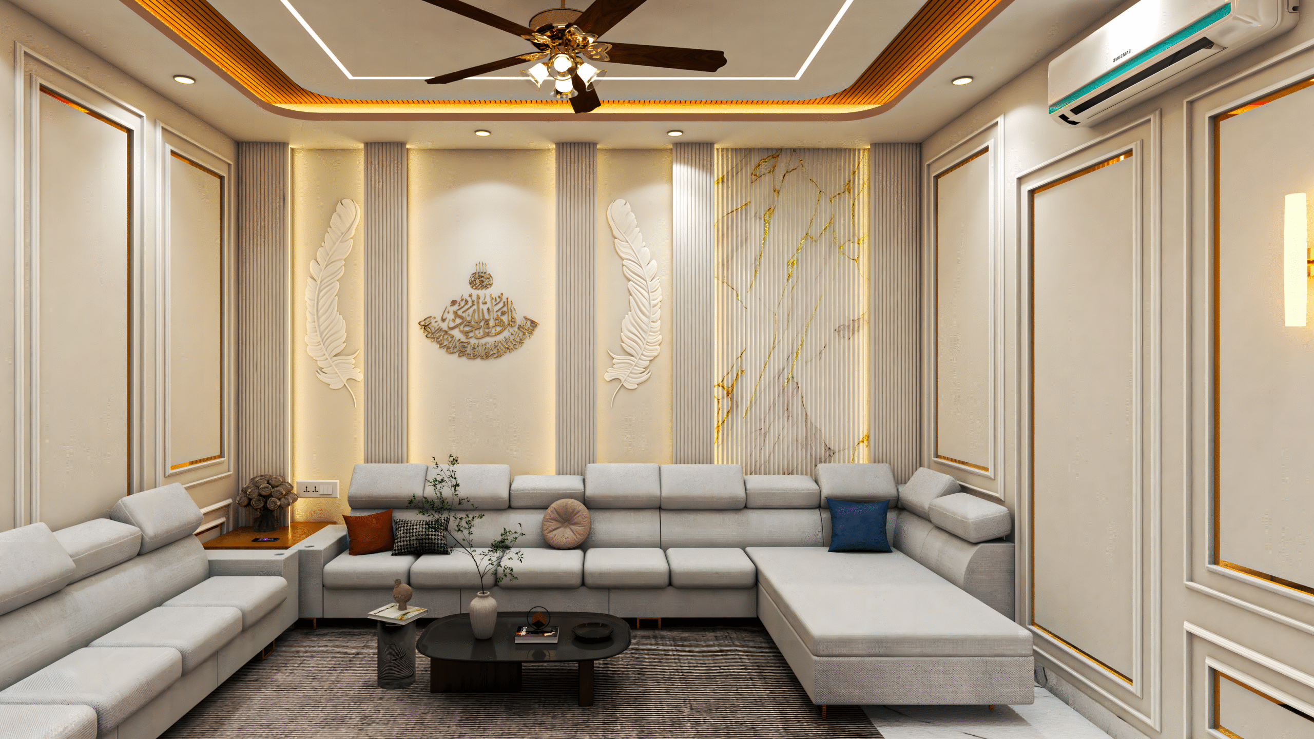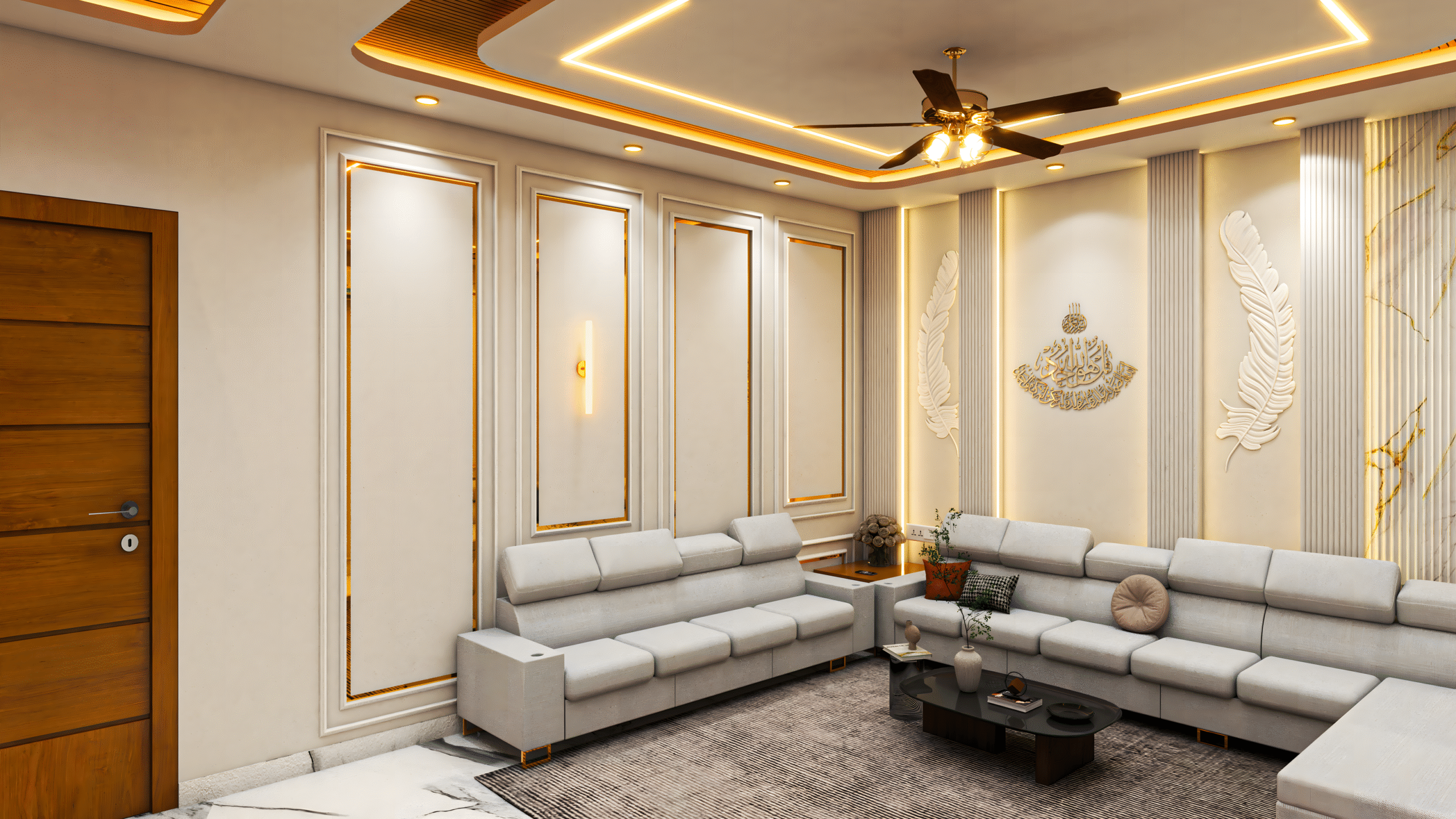 With our 3D visualization expertise, clients experienced the design beforehand, ensuring satisfaction and alignment. The result is a stunning, functional drawing room that reflects both elegance and harmony.